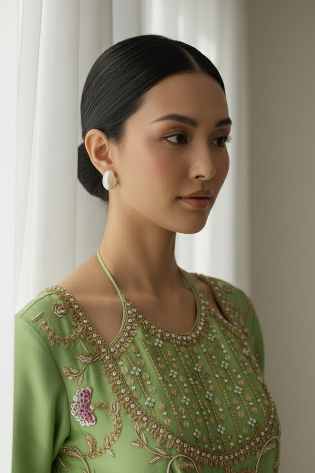 Perfect for formal events, festive soirées, or intimate celebrations, Dew is a timeless creation that embodies softness, grace, and craftsmanship at its finest.