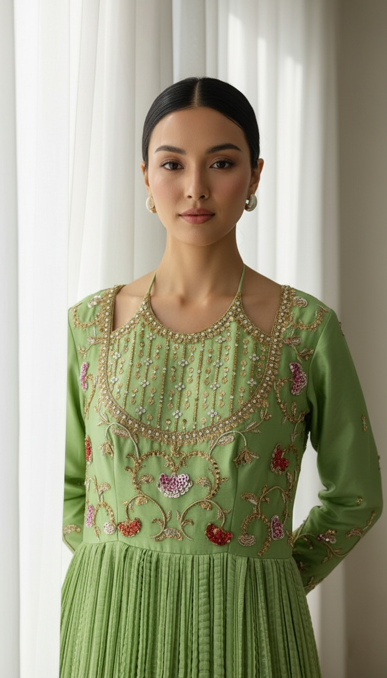 Hand Embellished: Resham, Tilla & Sequins , dabka